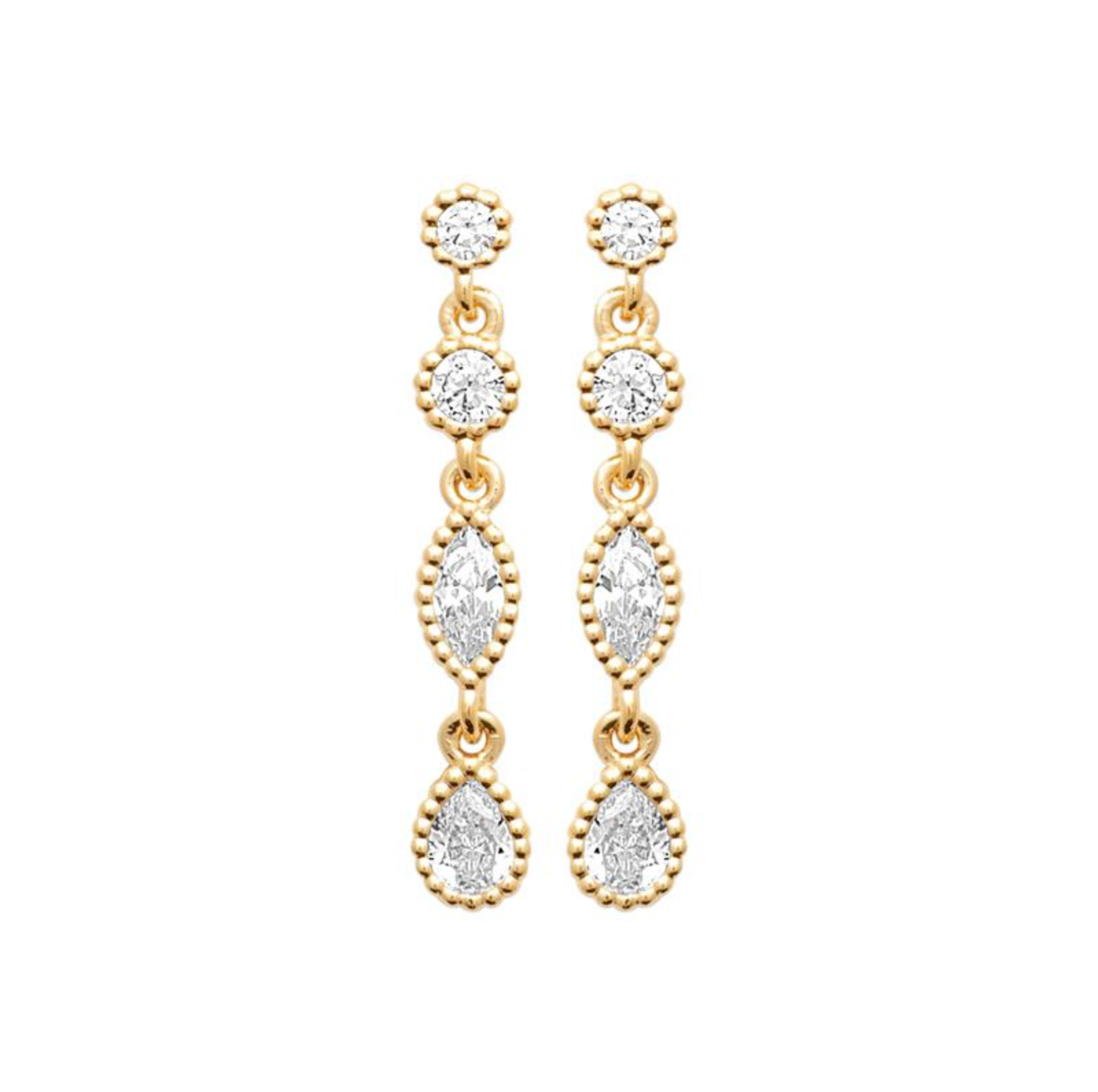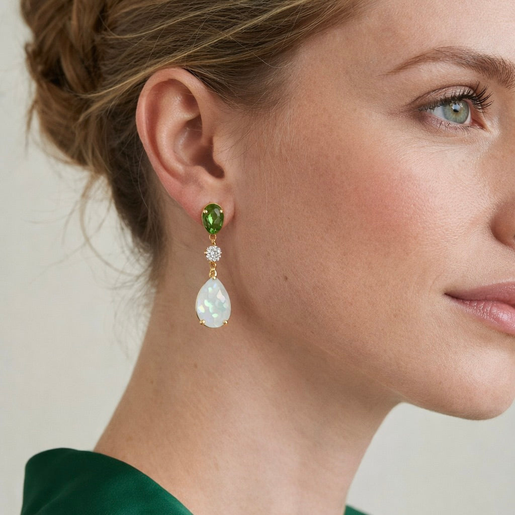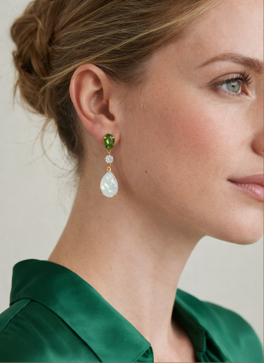 Something as simple as a pair of drop earrings with a soft blend of colorful gemstones can bring an outfit to life.
